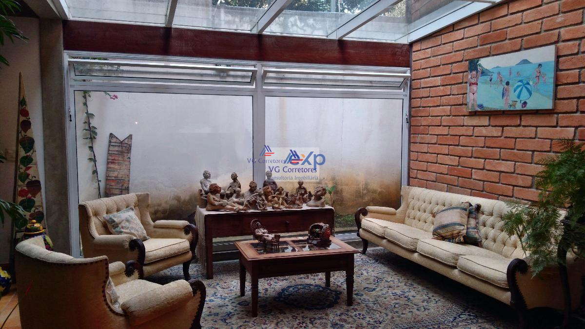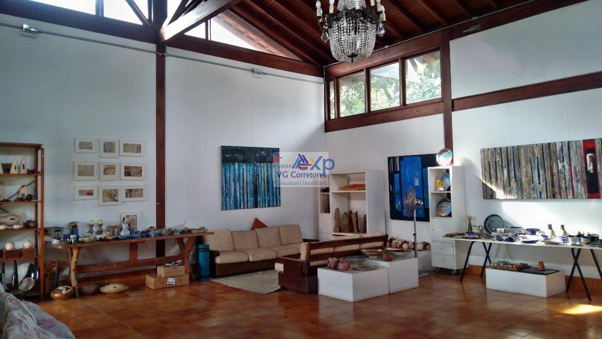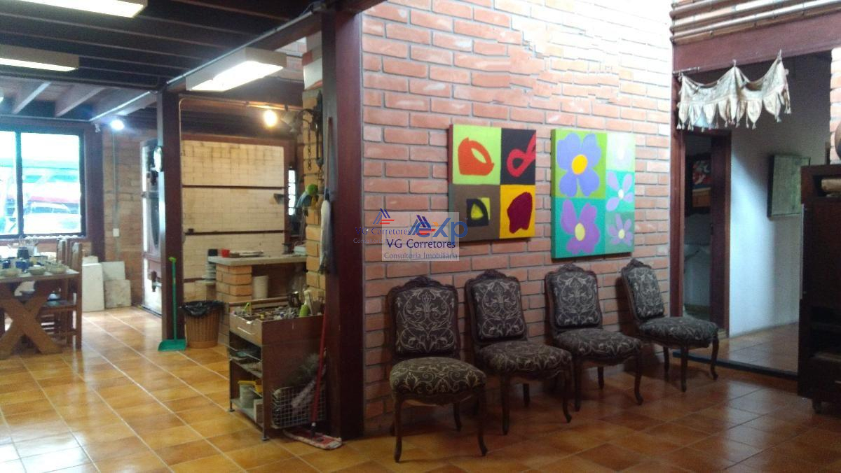 Excelente casa projetada para servir como atelier da artista e sua residência, esta totalmente isolada da rua. No nível térreo além de estacionamento para até 8 carros (4 vagas cobertas), temos o atelier propriamente dito, dividido em 2 grandes salões amplamente iluminados e ventilados com uma sala de espera e varandão na entrada. 2 banheiros com 2 WCs cada. Por uma escada de madeira, tem-se acesso no andar superior a um escritório em 2 ambientes, semi-aberto como mezanino, com armários e acesso ao sótão (espaço para guarda de materiais).