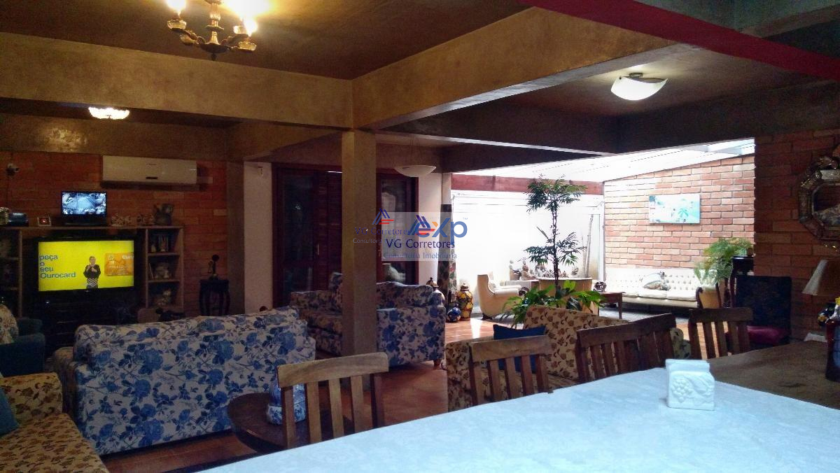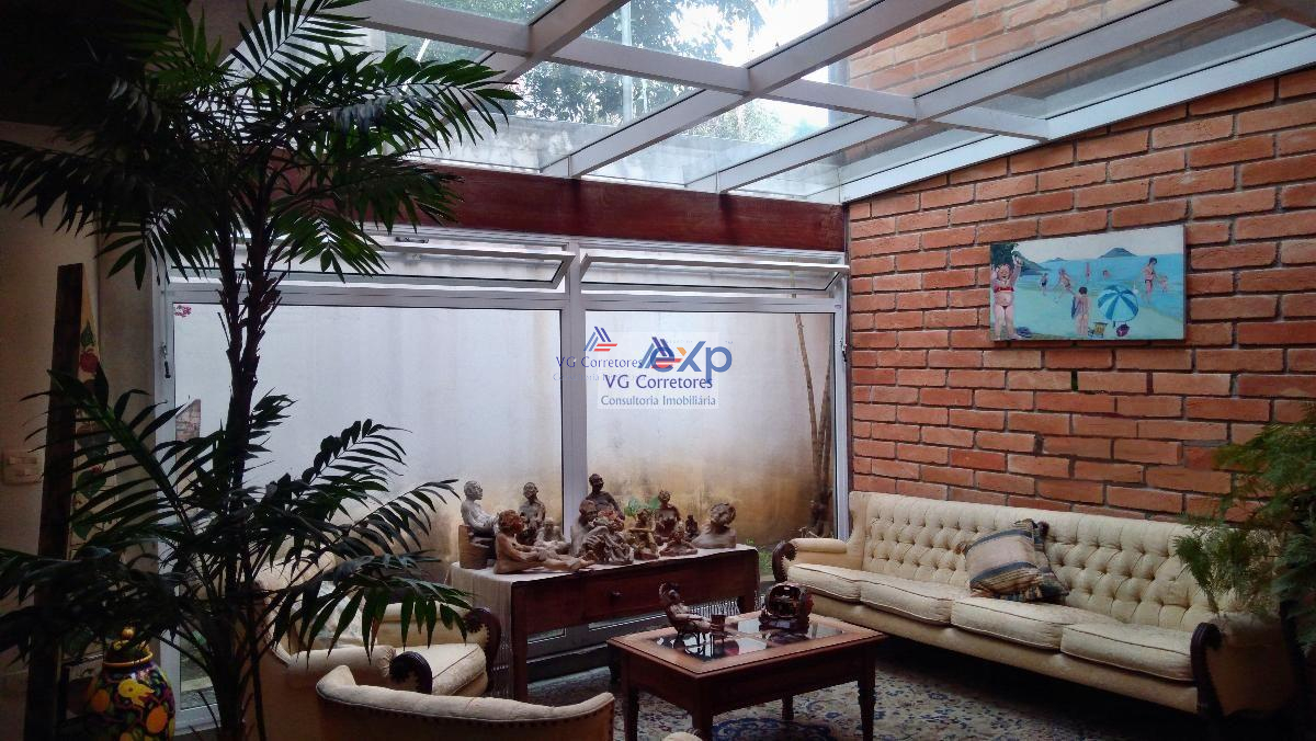 Ampla sala em 2 ambientes com lavabo, jardim de inverno e cozinha americana. Cozinha com área isolada para preparo dos alimentos, adega, sala de almoço, áreas de serviço interna e externa.