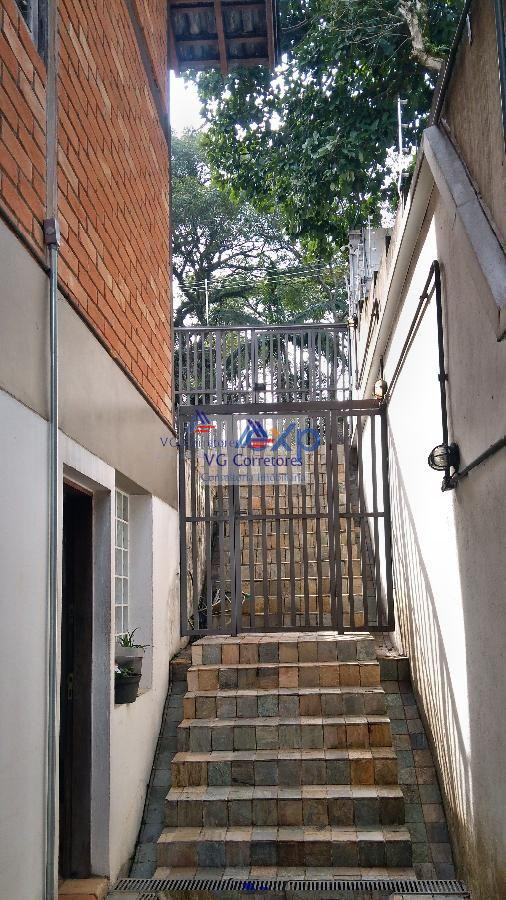 Descendo-se outra escada, temos a entrada social da residência, ladeada por uma pequena área externa e uma alameda com um pomar que passa por 2 dos 4 quartos e termina no quintal gramado nos fundos, este com 161m2.